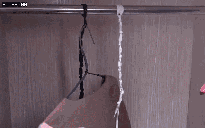 安装简易窗帘时使用的吊环,也能让一个普普通通的衣架功能升级。你瞧!有了这些吊环,围巾、丝巾再多也不怕,统统都能挂起来,不占空间还方便拿取。 不仅可以悬挂丝巾,单薄的背心、吊带裙也能一次性搞定,再也无需翻箱倒柜找衣服了,你的衣柜也可以像商场陈列柜一样整齐。 这些小吊环还可以拼接起来,制成收纳网格,挂丝巾、腰带、或是小配饰方便极了。