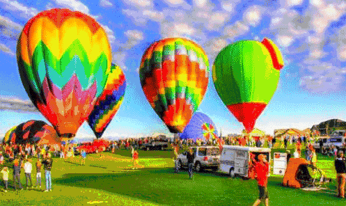 白天看热气球腾飞,夜晚观热气球彩灯,来一场空中环游记。