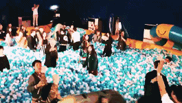 每隔一小时,现场工作人员召集全场伙伴进行歌曲或舞蹈“快闪”