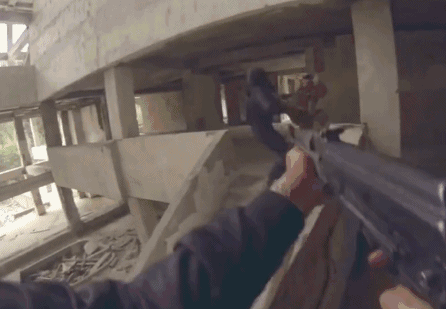 真人CS,现场设置对战障碍,在规定区域两军对阵。