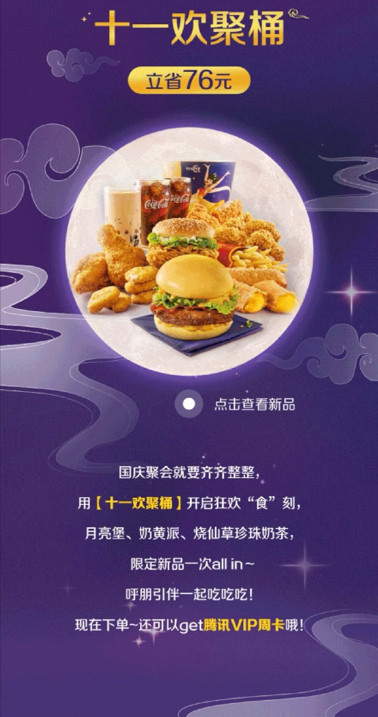 麦当劳十一欢聚桶来啦,狂省76元!还能9.9元品尝新月亮堡