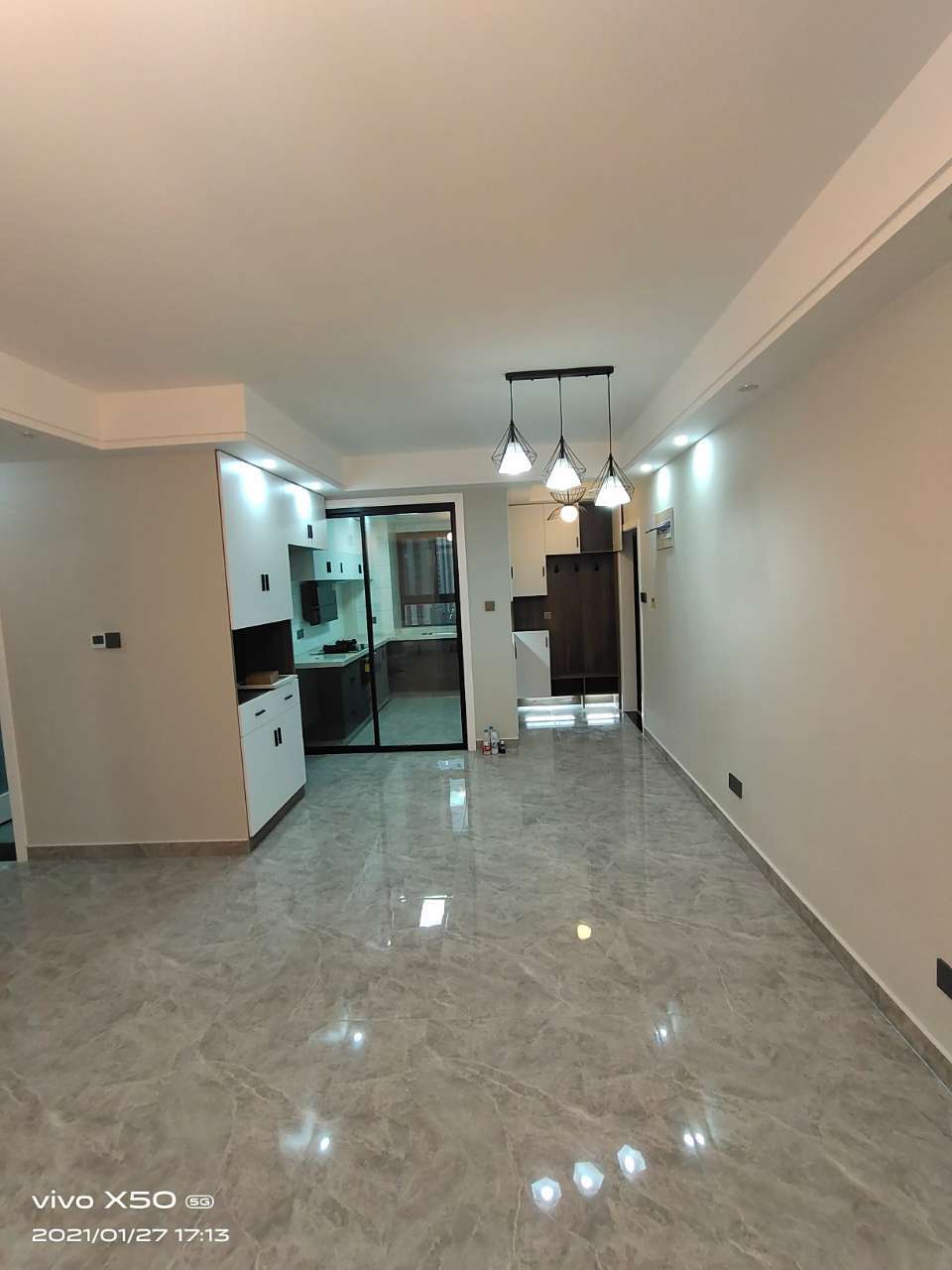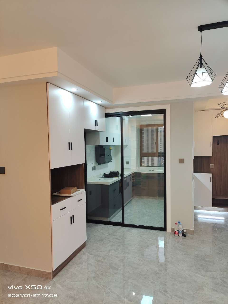 李婧:地板柜门篇~听了设计师的建议,柜门选的是这种光板的白色,白色耐看不过时,厨房柜门跳了色,上浅下深,出的效果的很好看[表情]地板选择的是复合地板,选了稍浅的颜色,比较耐脏点~装修公司都会把装修进展拍照发在群里,这样我们不用到工地就能知道咯,点赞[表情][attachmen .. (2021-04-09 09:47)