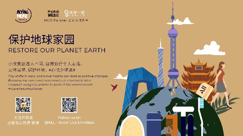 21世纪地球日#心悦少塑派#自带旅行个人用品PLANET 21 DAY 2021#ICareAboutMyPlanetBring My Own Travel Accessories团结一心,保护地球家园 每年“世界地球日”,雅高集团借此契机传递绿色环保的意识。今年4月21日,雅高#21世纪地球日#的重点是我们对减塑的承诺。我们积极采取一系列措施开展行动,包括雅高在大中华区于2020年12月宣布的行业领先的可降解减塑方案,采用可再生生物降解材料制品取代客房洗浴用品的塑料包装。 从身边的点滴做起,减少一次性塑料的使用,小改变将创造大不同。自带旅行小物件是可以让旅行更便捷、更环保、更舒适的潮流。我们鼓励这样更加绿色的生活方式,在提升旅行品质的同时,一起做对环境保护有贡献的旅行达人。野生救援WildAid以及旗下的地球一援EarthAid可持续生活方式项目作为公益支持伙伴,将与我们一起开展#心悦少塑派#传播活动,倡议大家选择绿色环保的生活方式,减少一次性塑料制品的使用,共同降低对环境的负面影响,生动源自行动,保护地球家园。活动已于2021年4月21日开始,敬请关注昆山瑞士大酒店公众号以及微博,期待你的参与!Together, Let’s Help Restore Our Planet Earth Every year on #GlobalEarthDay, Accor highlights the importance of mitigating environmental impact. This year for Accor #Planet21Day on April 21st, the focus will be our commitment to reduction of plastic use. We have been working towards a series of initiatives including an industry first biodegradable solution for Accor Greater China to replace single-use plastic bathroom amenities, announced in December 2020. We encourage a new mindset. Just a tiny shift in daily and travel habits by each traveler can be the catalyst leading to positive change. Bringing my own travel accessories is the latest trend among socially responsible lifestyle travelers. By cutting down on single-use plastic, everyone can become a travel trendsetter who is mindful towards protecting our fragile planet while having fun exploring its wonders. We invite you to join the upcoming pledge campaign #ICareAboutMyPlanet with our NGO partner WildAid and its sustainable lifestyle program EarthAid. Together we curb negative impact on the environment and protect the planet. Watch this space for our Pledge campaign on April 21st, 2021!Follow us on Swissotel Kunshan Wechat and Weibo to get more information!