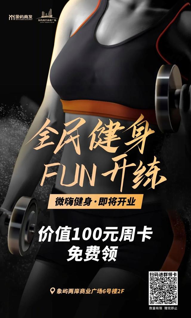 象屿两岸商业广场请你来健身,100元周卡免费领!一起燃烧卡路里