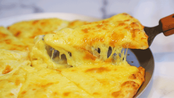 榴莲果肉经过高温,果肉已经完全软烂融入到饼中了,浓郁的香气散出,拉丝的芝士进一步丰富了披萨的口感和香味~