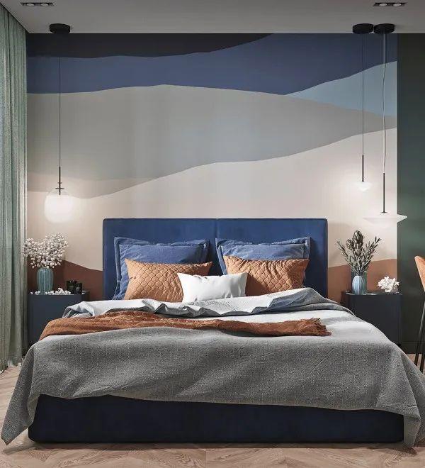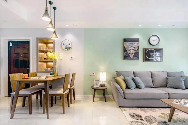 随着家装设计的不断发展,现在墙面装修早已不局限于同一种色彩,多种色彩在墙面交替出现,不仅可以利用深浅色差,创作出丰富多样的空间层次,还能巧妙地利用色彩拼接,作为空间区域的划分。