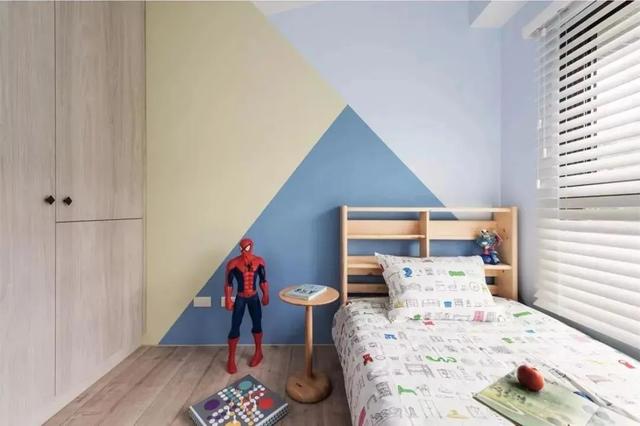 ▲儿童房也是适合拼色墙的空间,用简单的颜色做出童趣的感觉。可以提升他们的创造力与想象力。
