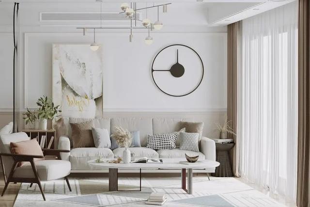 因为比较深重的颜色会给人头重脚轻的感觉,让空间变得沉重压抑,所以在选择颜色时,横向拼接的上半部分多用白色或者浅色系,不仅是因为浅色对整体家居风格的包容性会更强,而且与顶面相接,也可以在视觉上扩展空间,让房间显得更有空间感、更敞亮。
