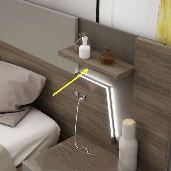 但我们要想进一步节约空间,可以去掉床头柜,利用墙上的抽屉隔板作为一个可以随时使用的床头柜,平时隐藏之后和墙面空间融为一体,空间更宽敞,使用的时候将它拉出来照样可以满足平时物品的堆放,非常好用!