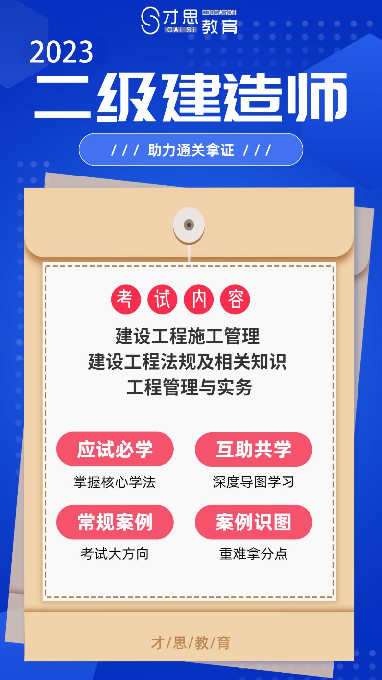 二级建造师,是一种[url][urlend4]类执业资格,是担任中小型[url][urlend4]的前提条件。二级建造师执业资格考试合格者,由省、自治区、直辖市人事部门颁发《[url][urlend4]二级建造师执业资格证书》。取得建造师执业资格证书经过注册登记后,即获得二级建造师注册证书,注册后的建造师方可受聘执业。【报名条件】凡遵守国家法律、法规并符合下列条件之一的,可报名参加考试。(一)考全科1.具备工程类或工程经济类中专及以上学历并从事建设工程项目施工管理工作满2年;2.具备其他专业中专及以上学历并从事建设工程项目施工管理工作满5年;3.从事建设工程项目施工管理工作满15年。(二)增报专业报考人员须已取得二级建造师资格证书方可报考,考试成绩当年有效。(三)免一科持有二级建造师临时执业证书的人员,参加二级建造师考试可免试《建设工程施工管理》科目考试。(四)免二科持有一级建造师临时执业证书的人员,参加二级建造师考试可免试《建设工程施工管理》和《建设工程法规及相关知识》2个科目考试。【考试科目及作答方式】(一)考试科目。考试设《建设工程施工管理》、《建设工程法规及相关知识》和《专业工程管理与实务》3个科目,其中《建设工程施工管理》和《建设工程法规及相关知识》科目试题为客观题;《专业工程管理与实务》科目设置建筑工程、公路工程、水利水电工程、市政公用工程、矿业工程和机电工程等6个专业,试题由主观题和客观题组成。(二)作答方式。1. 纸笔模式。客观题用2B铅笔在答题卡上作答,主观题用黑色墨水笔在答题纸(专用答题卡)上作答。2. 机考模式。在电子计算机设备上作答客观题和主观题。【管理办法】二级建造师资格考试成绩实行滚动管理,参加全部3个科目考试(级别为考全科)的人员须在连续2个考试年度内通过全部应试科目,参加2个科目考试(级别为免一科)的人员须在1个考试年度内通过相应应试科目,参加1个科目考试(级别为免二科)的人员须在1个考试年度内通过相应应试科目,方可获得职业资格证书;参加1个科目考试(级别为增报专业)的人员须取得二级建造师资格证书后方可报名,通过应试科目后方可获得成绩证明。【考试费事宜】二级建造师执业资格考试《建设工程施工管理》和《建设工程法规及相关知识》科目按每人每科60元标准收取考务费,《专业工程管理与实务》科目按每人120元标准收取考务费,报名费按每人10元标准收取。机考模式与纸笔考试模式收费相同。【考试时间】 每年6月考试,2023年考试时间为6月3日、4日。【培训优势】1、苏州本土连锁教育培训机构,学习有保障。2、课程体系完善:分为入门导学、基础精讲、习题练习、真题解析、考前冲刺。3、师资力量强:行业内金牌老师授课,学术派与实战派组合且拥有相关考试证书。4、智能题库完整:章节练习、模拟题练习、真题练习、冲刺题模考。5、全程督学:入学后专职班主任持续跟进学习,配备助教老师进行答疑。6、证书推荐:取得证书后推荐证书使用。
