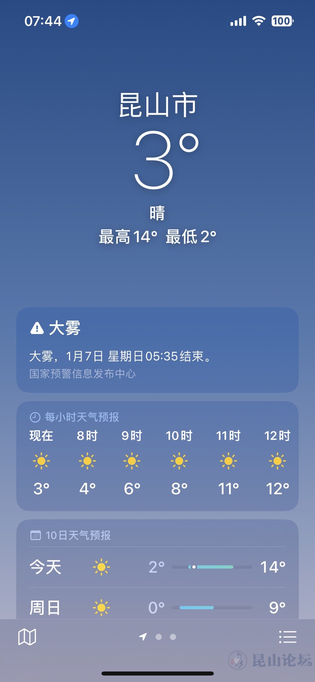 1月6日天气预报:昆山最高气温14度,早晨局部地区有雾