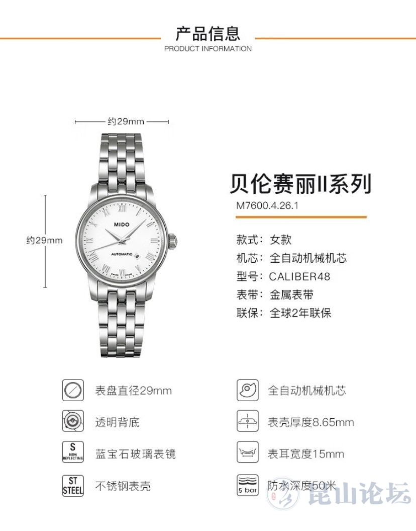 转美度贝伦赛丽系列女表,购于昆山商厦,商场票据和质保卡齐全