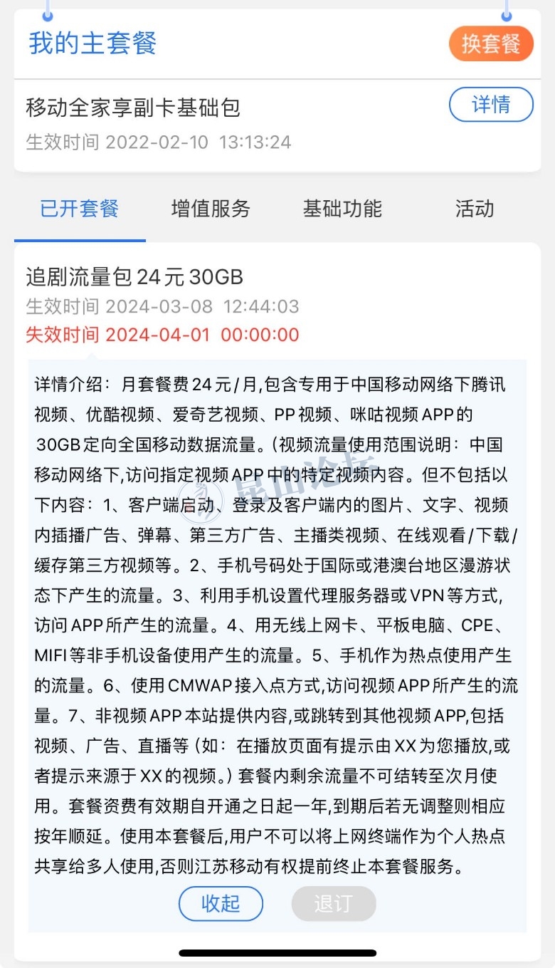 3月初家中老人使用手机观看短视频时,跳出移动公司追剧流量包活动内容,误操作只点击一次后就开通了该项业务,没有任何要求输入验证码或验证本人等的操作。老人告知子女后,子女与移动公司沟通被告知此项业务为活动业务,无法取消。后子女又多次与移动公司沟通,移动业务员又改口称要取消业务需支付违约金并称会将此事与上级沟通,后续再联系。多天等待后移动电话告知,目前取消该业务只能支付违约金(退订的时候倒是要验证码之类的信息了,良心了???)。移动公司在短视频平台投放的活动内容极具欺骗性,只是简单点击一下就开通业务,并采用霸王条款称取消必需支付违约金。另老人使用的号码为副卡,多次接到移动公司业务员电话推销活动,在老人明确告知不需要的情况下仍开通相关业务,造成非常不良的体验。是否可以依次推测,若老年人的那些不设密码的手机某天遗失,被某些与移动公司关联的有心人捡到,可以按此套路开通各种活动业务,即便后续取消,各种各样的违约金就到手了。移动公司是不是可以依此培养这种灰产团队⋯.像家中老年人使用的这种副卡,移动公司是否会大数据统计,精准投放广告,获取灰色收益?临近消费者权益保护日,发生这种不愉快的事情,只能说移动真是家大业大。大家也要防范此类事情发生
