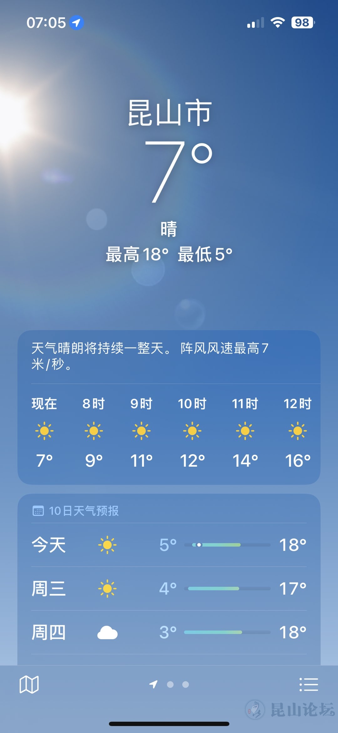 3月19日天气预报:昆山最高气温18度,虽然大晴天但是有霜冻
