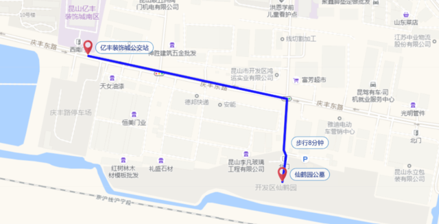 乘坐至亿丰装饰城站下车,步行约8分钟抵达仙鹤园公墓