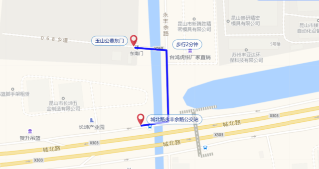 乘坐至城北路永丰余路站下车,步行约2分钟抵达玉山公墓