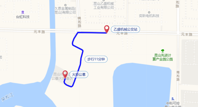 乘坐至乙盛机械站下车,步行约11分钟抵达火炬公墓
