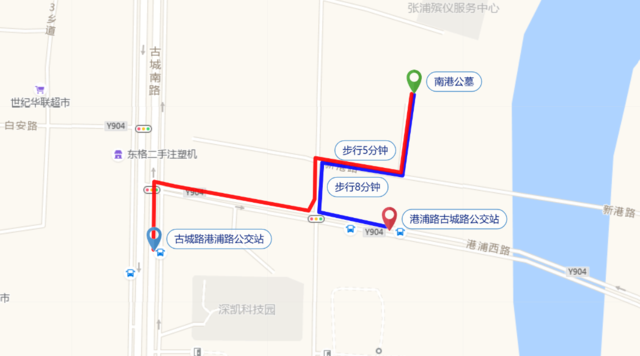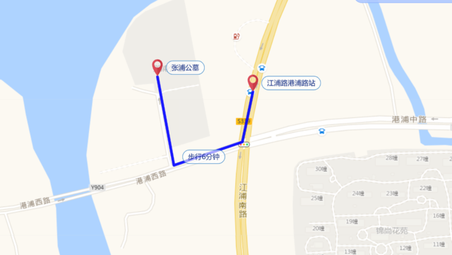 乘坐至江浦路港浦路站下车,步行约6分钟抵达张浦公墓