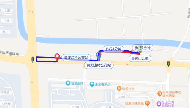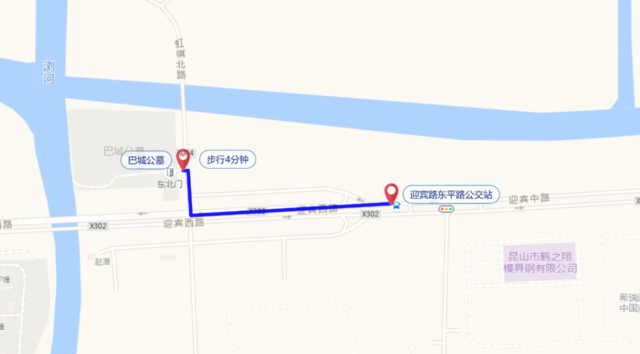 乘坐至迎宾路东平路(临时站)下车,步行约4分钟抵达巴城公墓