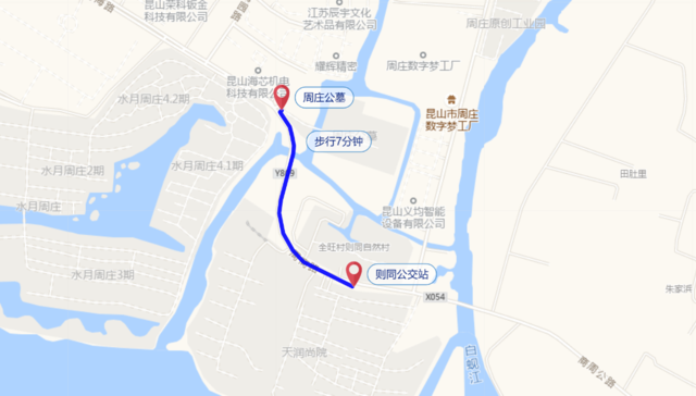 乘坐至则同站下车,步行约7分钟抵达周庄公墓