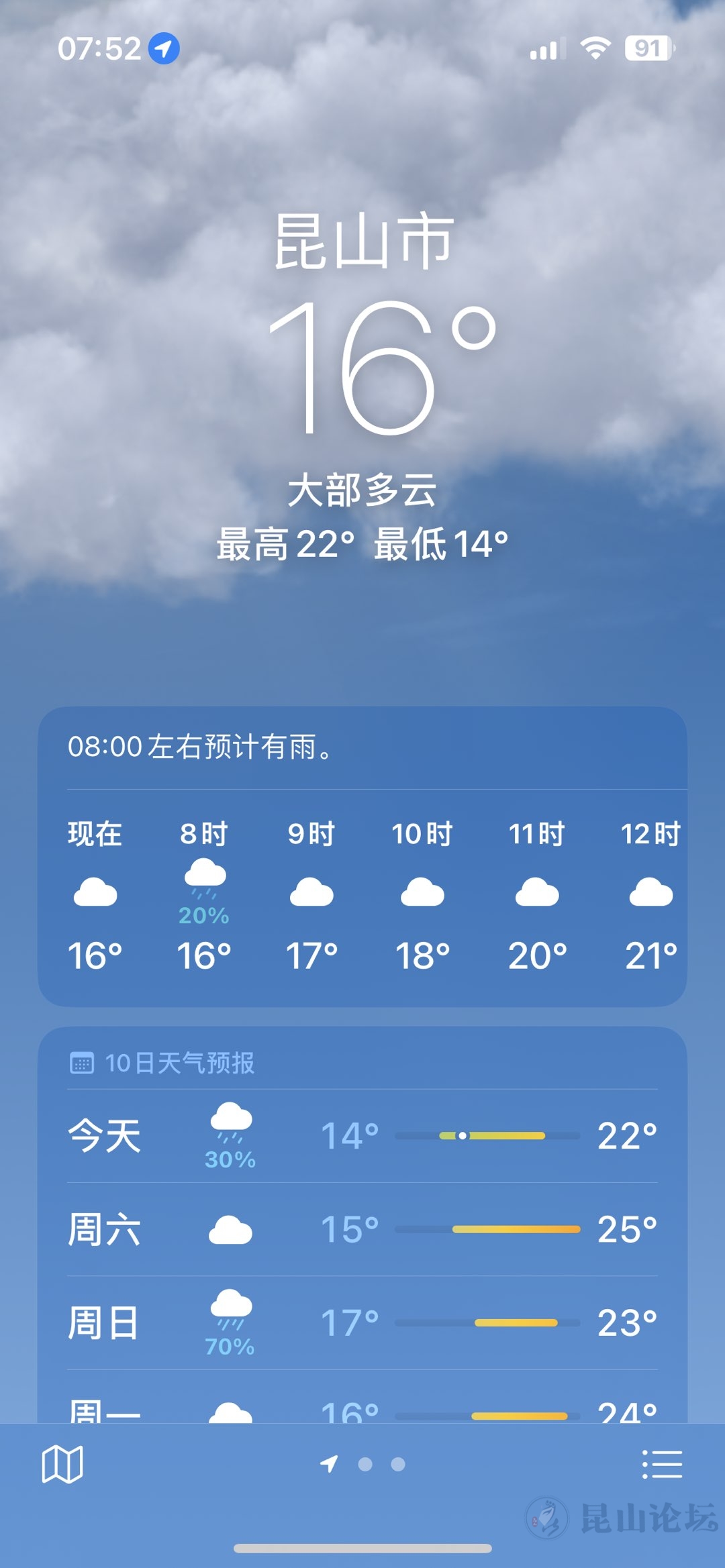 4月26日天气预报:昆山最高气温22度,多云无雨