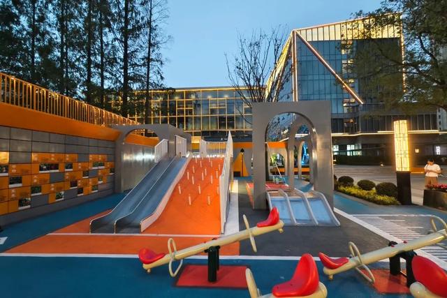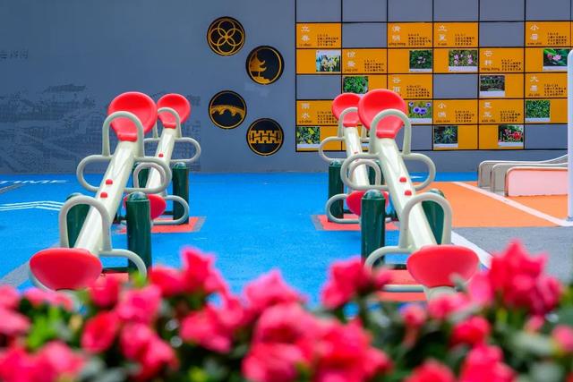 广场上有孩子们喜爱的滑滑梯、跷跷板、摇摇马等娱乐设施,还有以科普节气为主题的互动翻翻乐,以及刻有天福三桥、轨交站、建滔大厦等建筑剪影的景观墙。通过色彩、灯光的演绎,让市民在游玩的同时了解花桥的发展历程。
