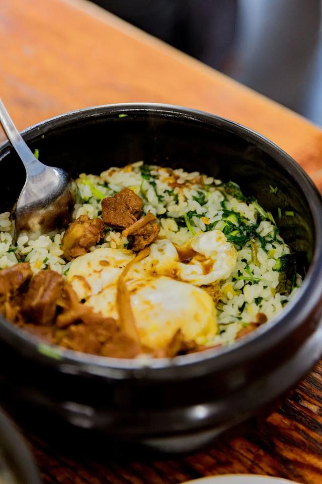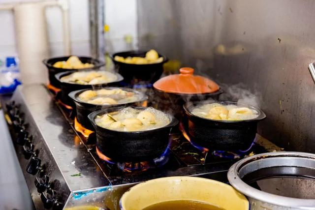 店员端着还在咕嘟冒泡的砂锅快步走来