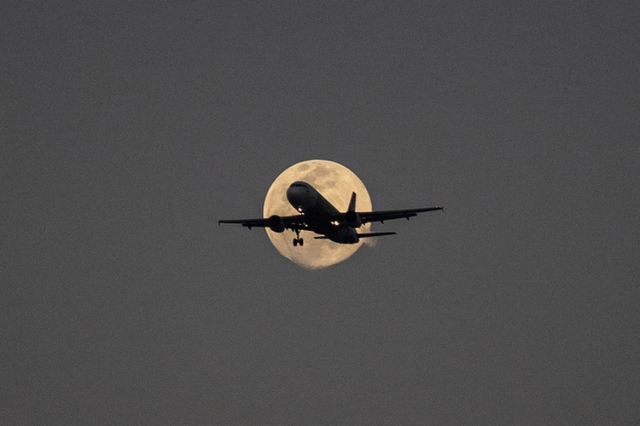 这是2023年3月6日在印度新德里拍摄的飞机和月亮。 新华社发(贾韦德·达尔摄)