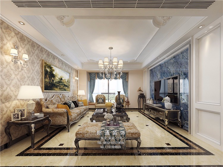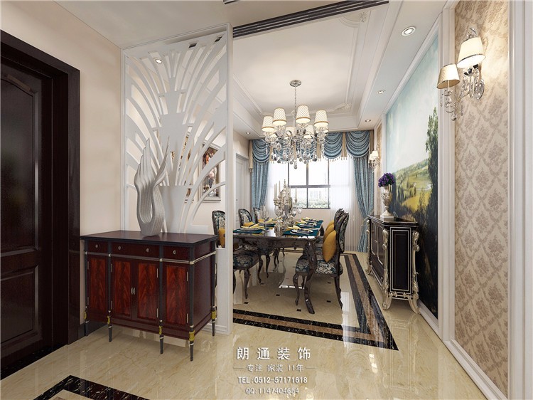 项目地址:黄金海岸设计单位:朗通设计团队装修风格:欧式风格主要材料:艺术烤漆玻璃、有色乳胶漆、实木线条、大理石、壁纸、地砖、地板等等。设计说明:本案所表达的主题是欧式风格。业主为事业成功的女性,外表充满自信的女王风范,内心却是柔情无限萌萌达,具有时尚的艺术气息。她对生活空间的品质有着较高的要求,本案融合了设计师对于户型的理解和更深层次业主情感和品质的挖掘,充分体现了业主对于时尚品味的要求,也体现了设计师对于时尚的理解和感悟。效果图: