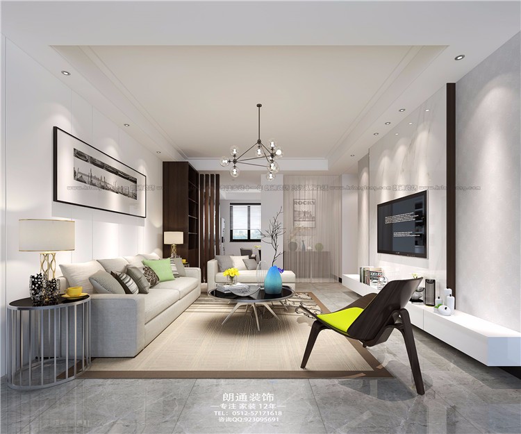 户型结构:三房两厅施工单位:朗通装饰项目地址:锦溪鑫河湾设计单位:朗通设计团队装修风格:简约风格主要材料:有色乳胶漆、实木线条、地砖、地板等等。设计说明:本案所表达的主题是简约风格。设计师选择了以纯白色为空间基调,不仅因为它是融合度最高的颜色,可以驾驭各式空间色彩,还能放大空间视觉,同时利用采光优势,良好的空间规划,简单的室内装饰,时尚的简约家具,再搭配着充满艺术感的挂画,让业主在繁忙充满压力的生活中,找到心灵静处。效果图:
