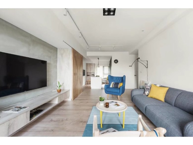 为了给孩子们一个开放有安全的空间,将客厅与餐厅重新规划融合在一起,设计色彩家具跳脱出空间的视觉感受;