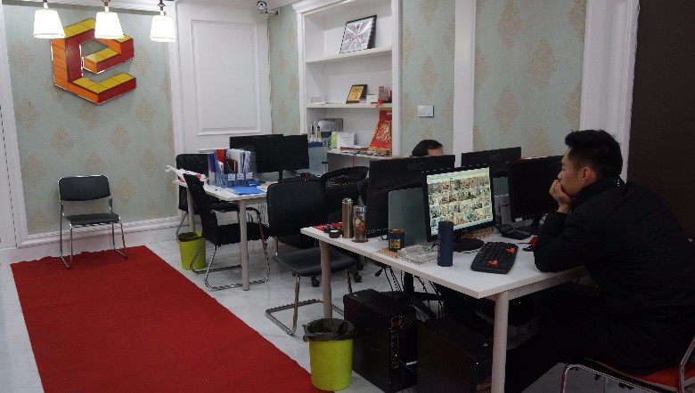 家装e站,一共有三层,一楼是设计师办公的地方,二楼是材料展示区和业主沟通的地方,三楼就是老板、财务等办公的地方。