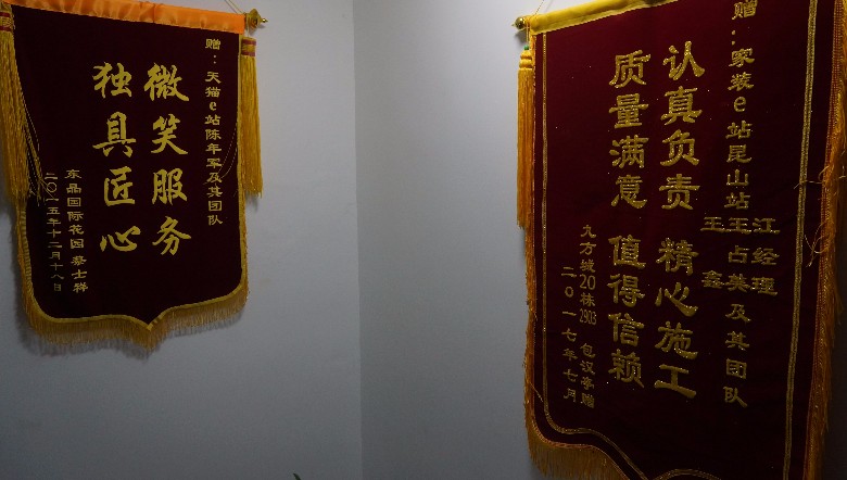楼梯口摆放着业主对他们的认可,这象征着荣誉和一份满意!对于业主的这份认可,怎么付出都是值得的。