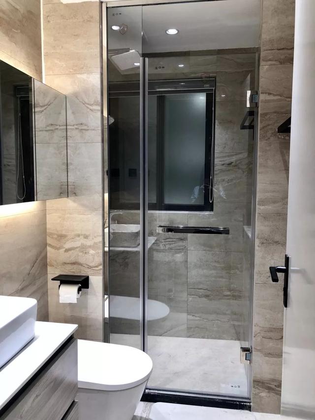 卫生间做了干湿分离的设计,墙地砖都是比较常见的款式,镜柜延伸到了马桶的上方,还加上藏光设计,既实用又时尚。