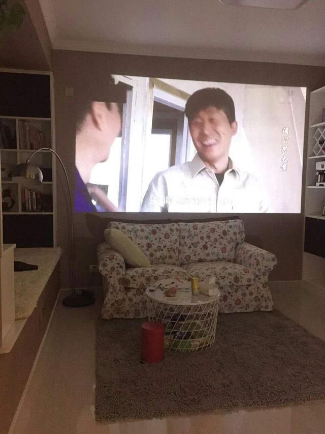 在客厅的设计上也是花了心思的,投影+电视的组合,让业主每次在家观影都有一种在电影院的感觉,真的是非常舒适惬意。而小碎花的布艺沙发搭配铁艺茶几,又瞬间为客厅增添了几分小清新。