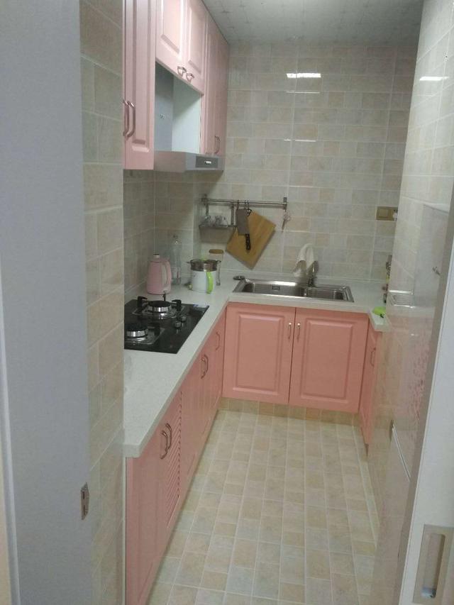 粉色的橱柜透露出满满的少女心,在这么一个空间里做饭,心情都是美好的。