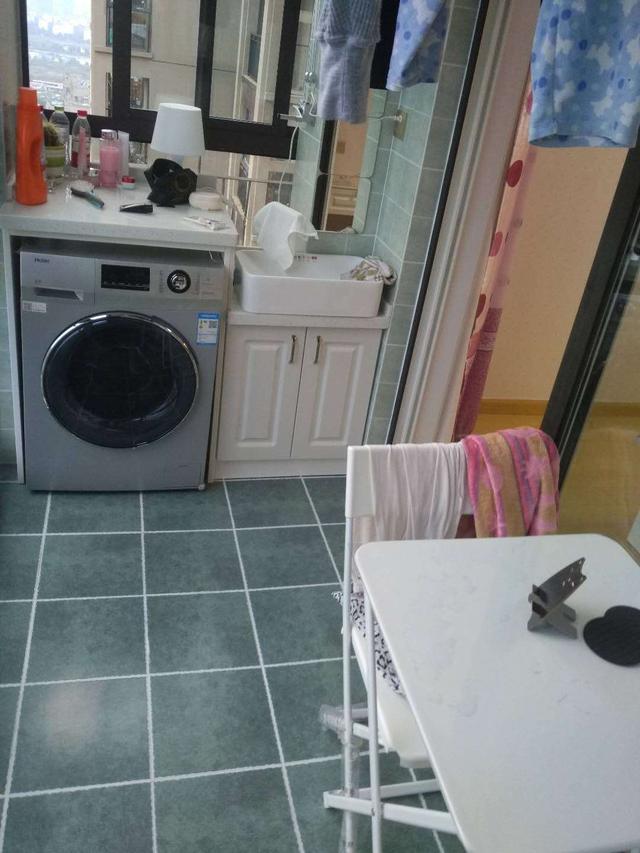 阳台是整个家的洗晒区,洗衣机柜和洗手台柜,简洁大方。