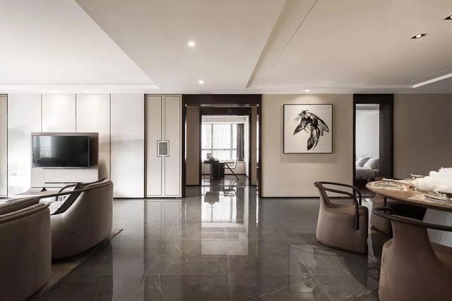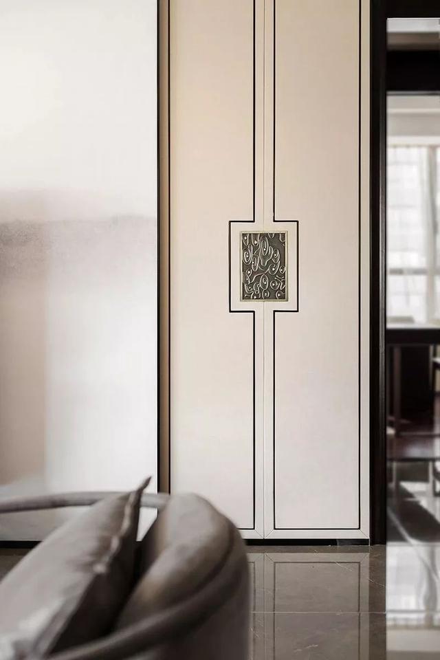 ▲深木色的哑口、门套和白墙的搭配,平和且深邃;