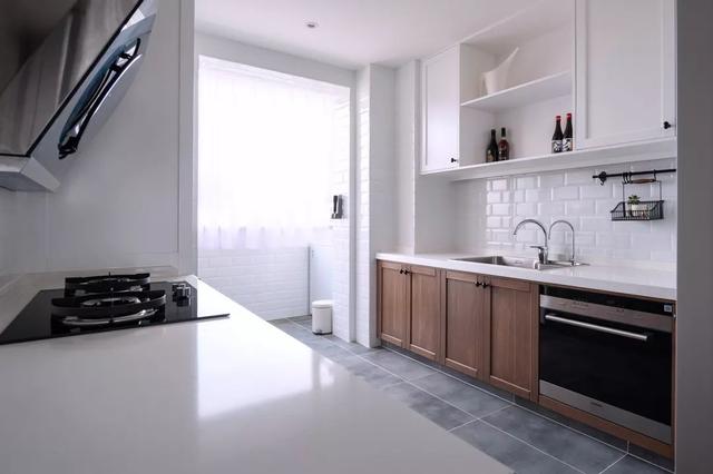 ▲厨房也通往了生活阳台,所以屋主选择了双一字形的橱柜布局方案,把水槽和灶台给分开,两侧都拥有足够的操作台空间。