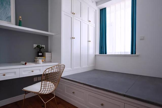 ▲还有一个卧室做上了榻榻米床和衣柜、书桌柜的组合式设计,柜门把手都选择了金属款的,让这个书房空间看起来更加优雅和浪漫。