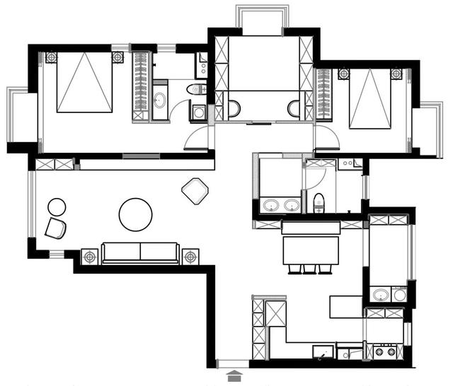 简约三房,餐厨结合,客厅外还有个娱乐区