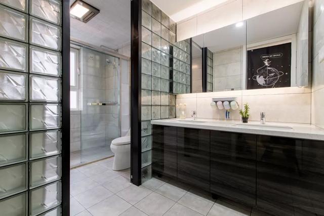 ▲卫生间内做了干湿分离的设计,把洗手台、马桶和淋浴给完全分开了,以玻璃作为隔断,也可以让光线流通起来。