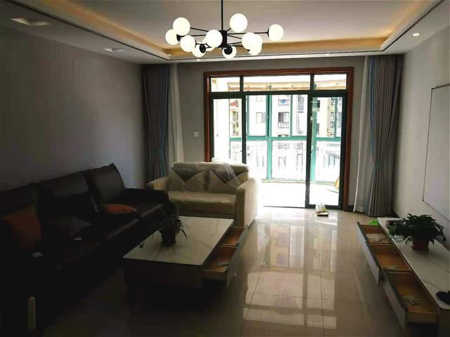 整套的茶几和电视柜,沙发黑白配,显得沉稳又不失沉重。客厅里再摆放上几株绿植,瞬间生机盎然。