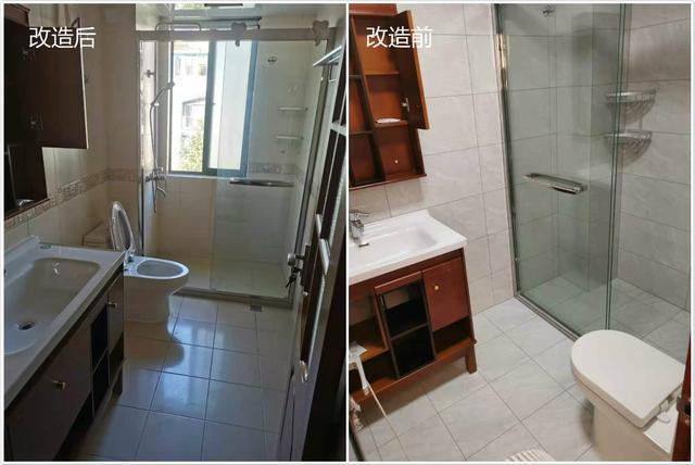 卫生间的改造体现在它的格局上,原来的格局非常不方便,改造后马桶、洗漱台在同一边,方便平时使用惯。干湿分离更加清爽了。