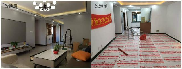 原来的客厅空空荡荡,改造的客厅加上软装的搭配,清爽整洁。