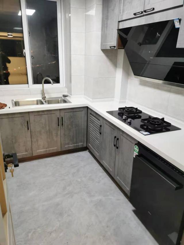 厨房也是运用高级灰橱柜,与家里的整体设计风格一致,白色台面更是让整个厨房看起来非常干净清爽。
