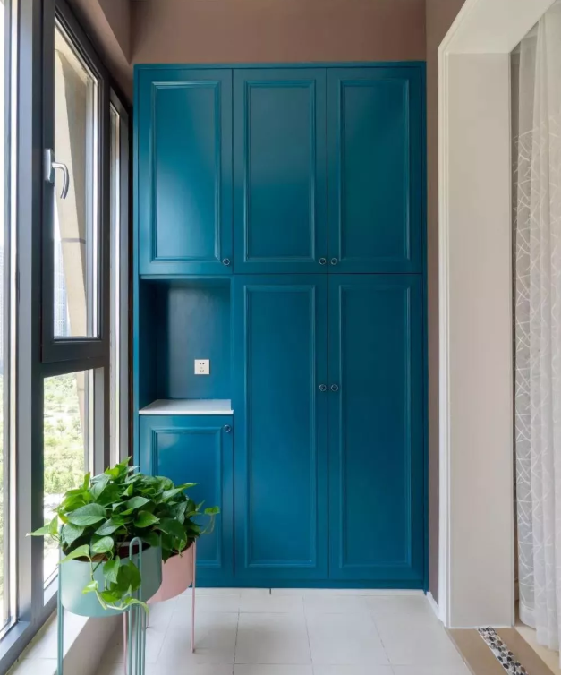 3) 选墙面同色,和墙面材料一致,则给人一种独立空间的氛围感,非常的精致和立体。