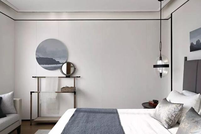 并不是只有大红大紫才能表达新中式的特点,色彩上素雅和谐,在视觉上不会出现大面积饱和鲜艳的色彩,大多以素雅清新的颜色为主,比如白,灰,亚麻色等。使得整个空间更加看起来清爽,通透。