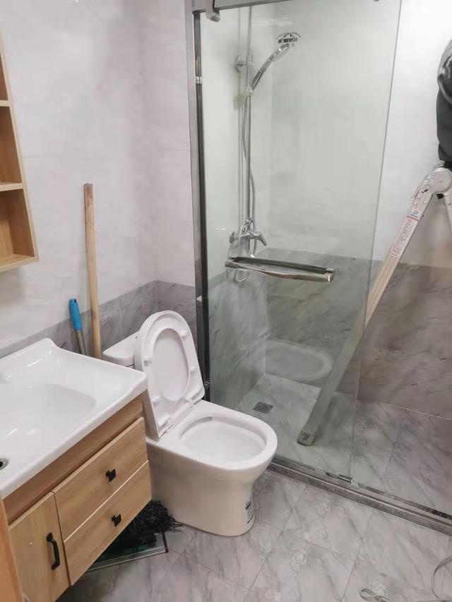 卫生间干湿分离方便打扫,浅灰加上白色,看上去更显清爽。