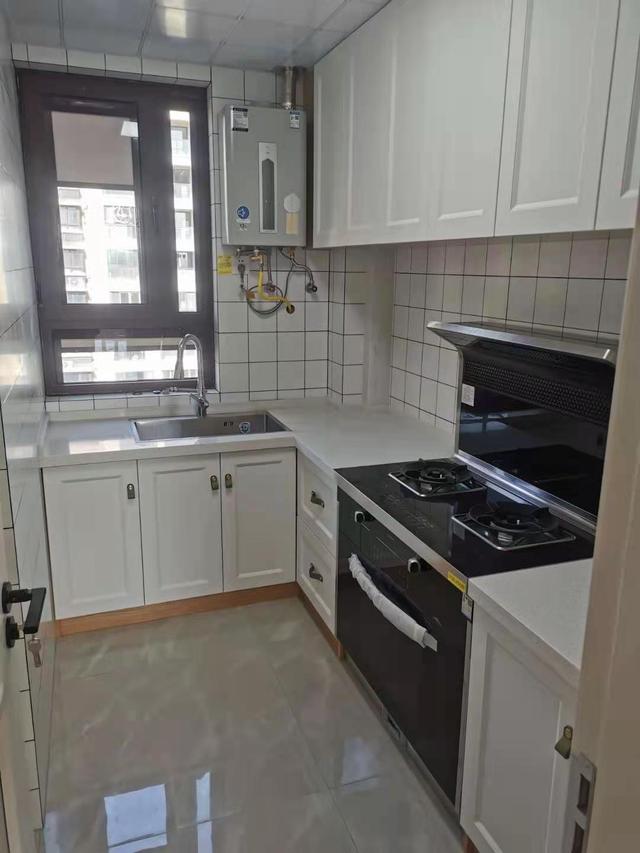 厨房以白色为主,看着非常干净整洁。和小格子墙砖搭配起来,让这个空间有了层次感。
